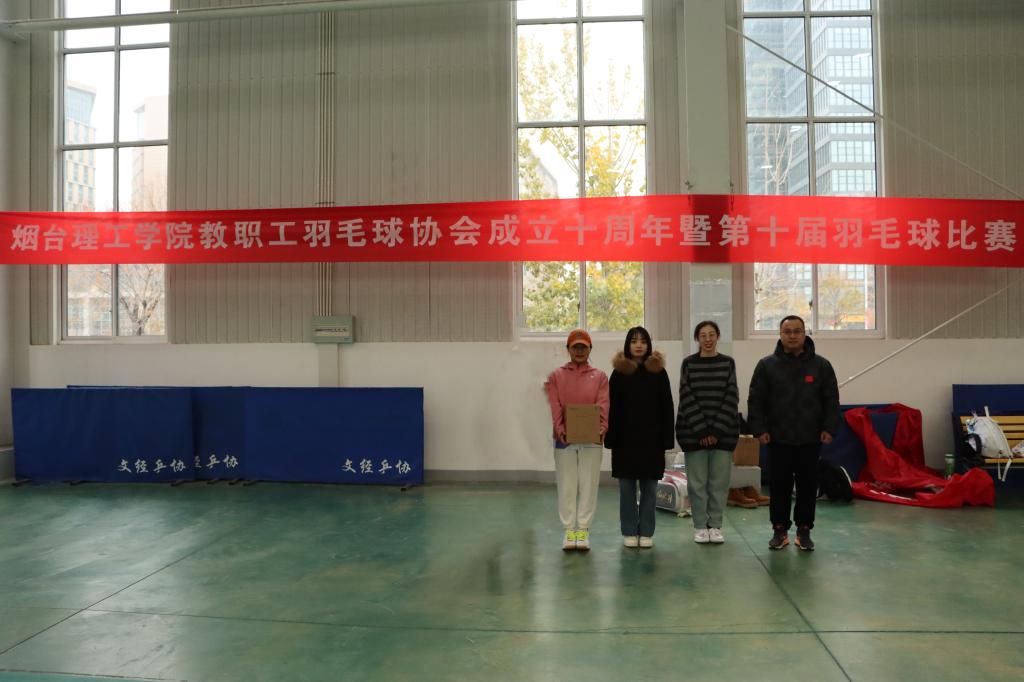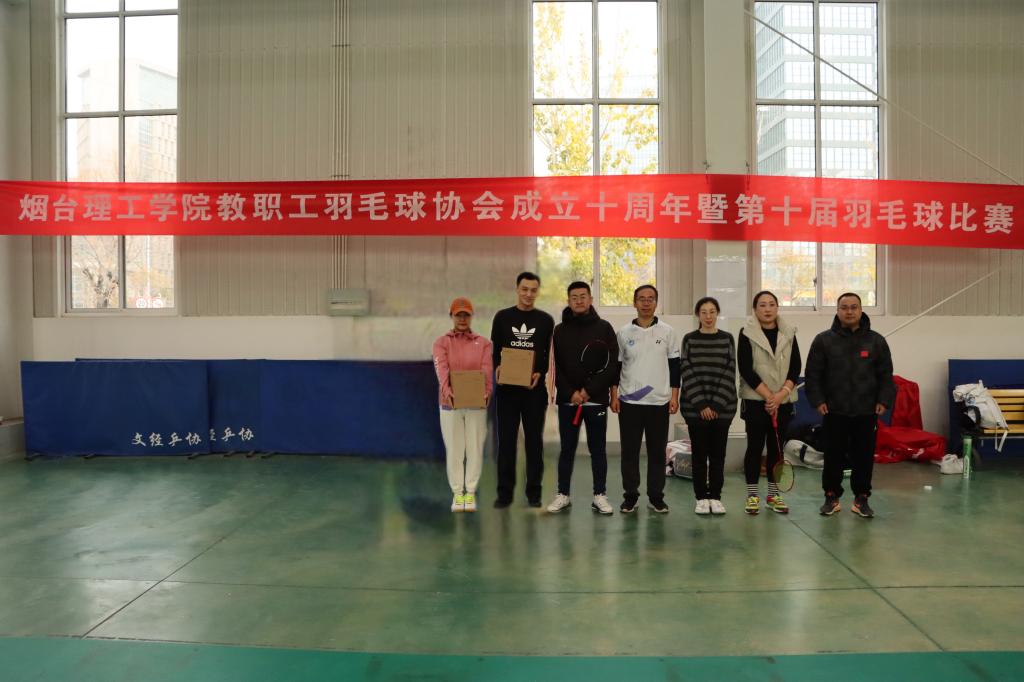 为丰富我校教职工业余文化生活,增强身体素质,烟台理工学院教职工羽毛球协会成立十周年暨第十届羽毛球比赛于11月27日到29日在文体中心隆重举行。本次比赛连持续三天,设置男子单打、女子单打、混合双打、师生双打四条赛道,共计48人参加。