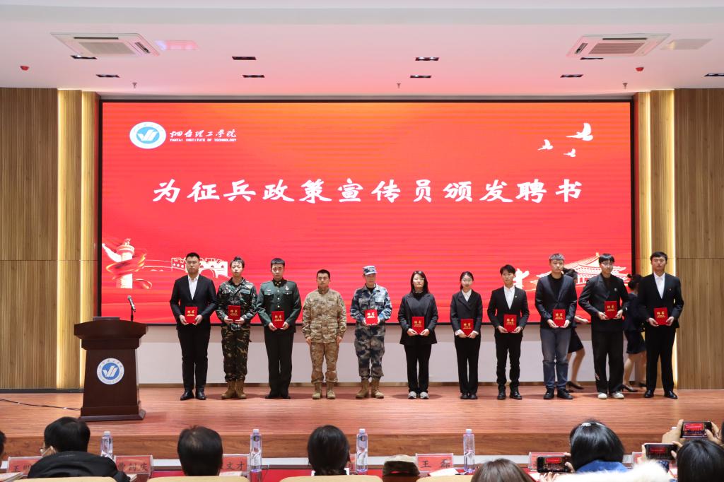 莱山区征兵办科长王磊为我校10名“征兵政策宣传员”颁发聘书,勉励他们践行使命担当,当好征兵政策的宣讲员、军营生活的领航员、青年疑惑的解答员。