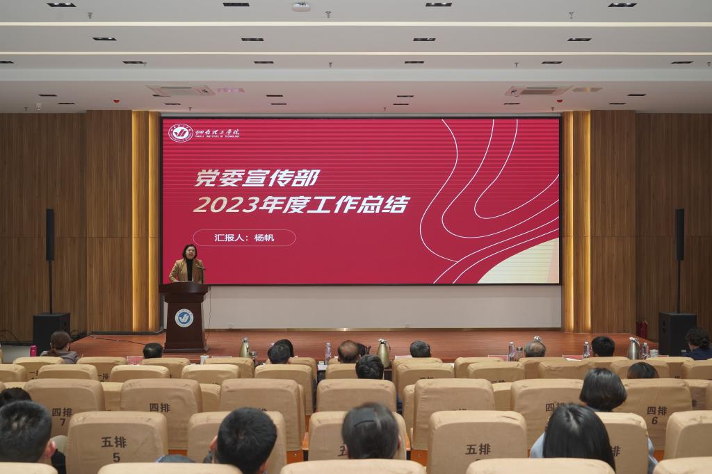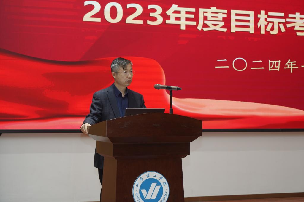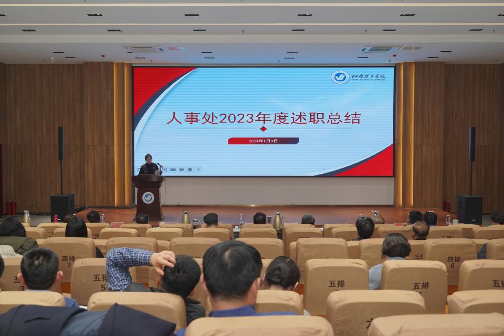 为全面总结2023年工作成效,深入研判当前形势,明确思路举措,更好推动2024年工作开新局、谋新篇。1月9日,学校于综合楼六楼报告厅召开2023年度部门负责人述职考评会。全校中层以上干部及高层次人才参加会议。会议由副校长苏春景主持。