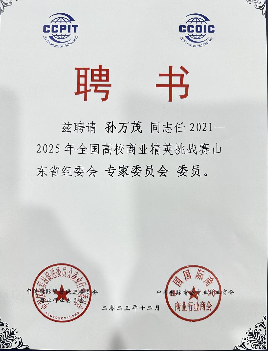 近日,全国高校商业精英挑战赛组委会对2023-2024年度组织管理有力、学生参与广泛、成果突出的优秀高校给予表彰奖励。烟台理工学院首次获得年度“优秀组织单位”称号,外国语学院商务英语专业教师孙万茂、曲海婷、卢洁芳、李金红获得全国高校年度“优秀工作者”称号。孙万茂正式获聘2021-2025年“专家委员会委员”,主要负责竞赛题库建设、省级竞赛评审等工作。
