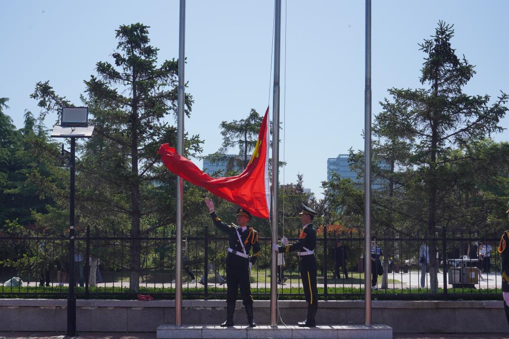 入场完毕,全场起立。开幕式在冉冉升起的五星红旗,高亢的国歌声中拉开帷幕。