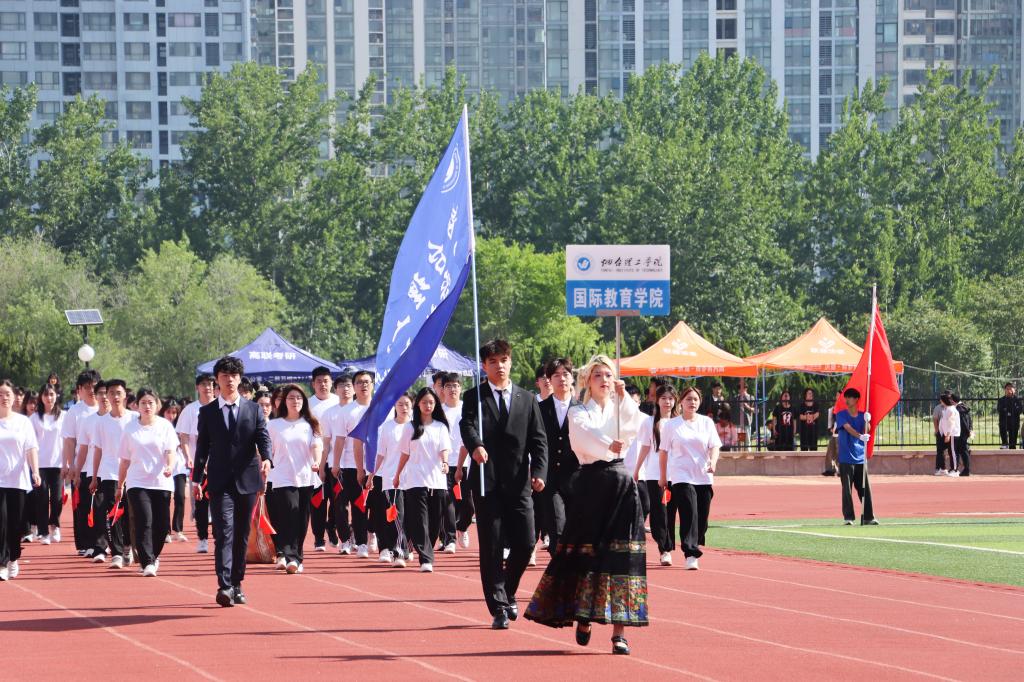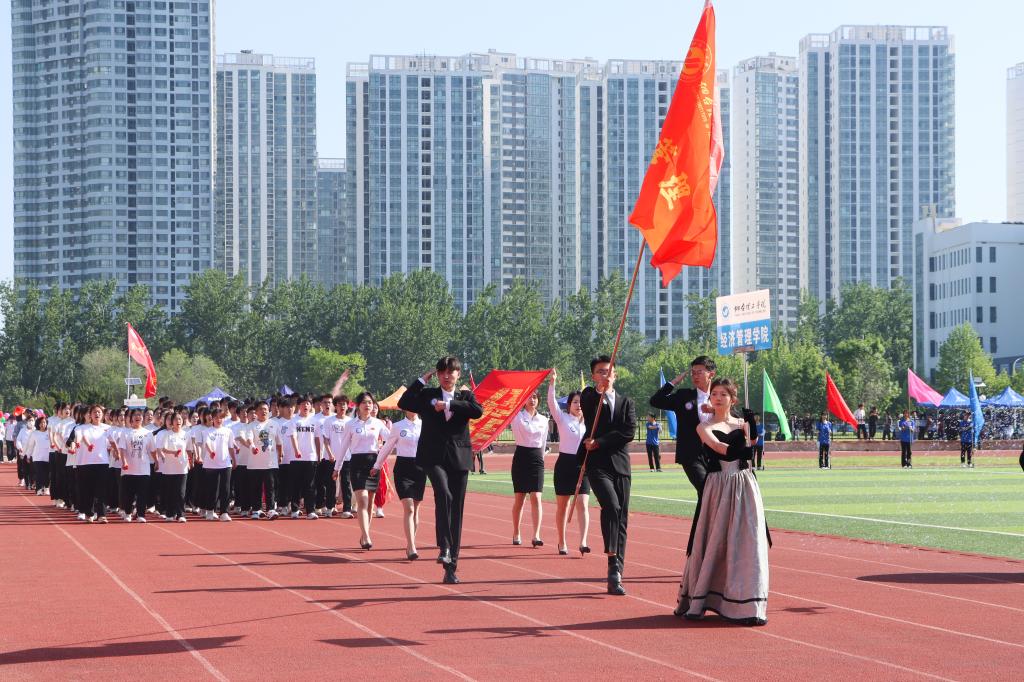 随着激昂的鼓乐声,国旗护卫队带领各方队以饱满的精神,整齐的步伐依次通过主席台。现场气氛热烈,别出心裁的展板、铿锵有力的口号、迎风招展的彩旗……,无不展示着师生们健康自信、昂扬向上的精神风貌。