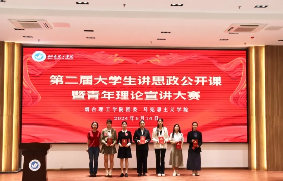 烟台理工学院校团委和马克思主义学院联合举办的“新思想引领新征程·新青年建功新时代”第二届大学生讲思政公开课暨青年理论宣讲大赛于6月14日下午2:30在综合楼六楼报告厅举行。马克思主义学院副院长邵菊欣、校团委副书记臧延云出席本次比赛,王琦、徐贝贝、王华妮三位老师担任评委,各二级学院师生代表参加比赛。