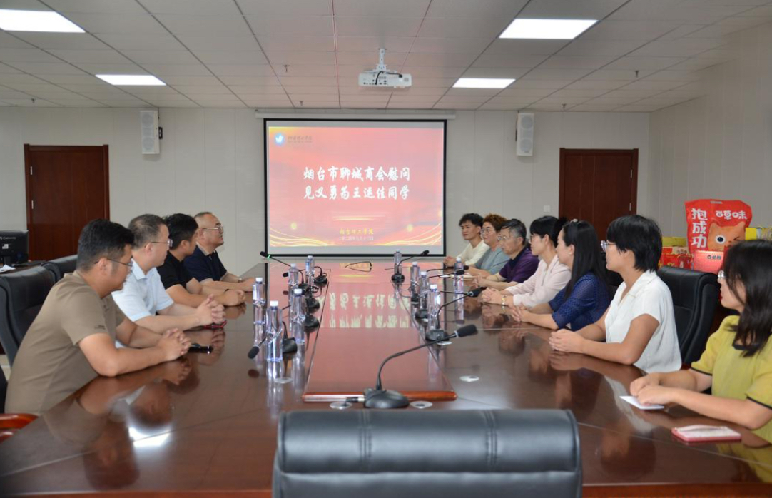 危急时刻施援手,见义勇为显担当。近日,烟台聊城商会一行负责人专程前往我校,为好青年王运佳颁发奖金与慰问品,对其不顾个人安危勇救落水女童的见义勇为行为进行表彰。烟台市聊城商会会长孔祥华,常务副会长姬长彬,副会长、聊城冠县籍联络人高庆峰,副会长、商会高校创业服务中心主任刘建朝,商会办公室主任马春辉,烟台理工学院副校长苏春景,建筑工程学院常务副院长田娜,党总支副书记陈秀慧,团总支副书记孙中惠,烟台理工学院建筑工程学院辅导员马杰出席本次座谈会。