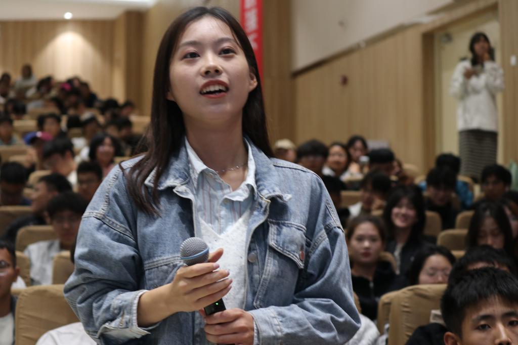 在提问环节,同学们兴致高涨,踊跃参与,纷纷围绕宿舍环境改善、教学设施升级、校园服务优化等方面提出了诸多困惑以及意见建议。校长认真倾听,用幽默风趣、通俗易懂且富有哲理的话语逐一为同学们答疑解惑。现场掌声频频,气氛热烈。