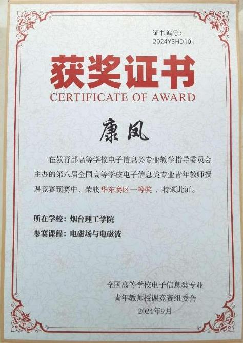 10月18日至20日,由教育部高等学校电子信息类专业教学指导委员会主办,中国计量大学承办的第八届全国高等学校电子信息类专业青年教师授课竞赛决赛在杭州成功举办。经过激烈角逐,我校信息工程学院康凤教师讲授的《电磁场与电磁波》荣获全国二等奖。