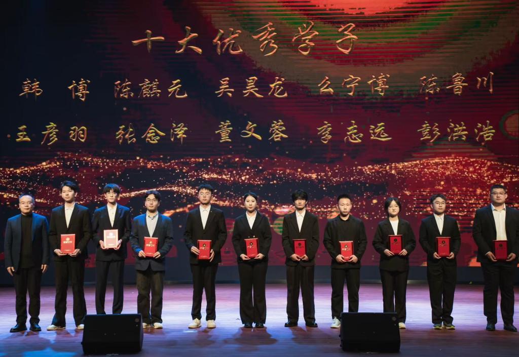 常务副院长原帅为董辉校友颁发“创业导师”聘书,各位领导为2023-2024学年科技竞赛获奖者、“十大优秀学子”“读书之星”获得者颁奖。荣获“十大优秀学子”荣誉称号的学生代表陈麒元同学以自己的亲身经历鼓励同学们积极探索未知,勇于实践,敢于创新。开幕式结束后,与会领导与嘉宾共同上台为信息工程学院第十一届大学生科技节点亮科技之光,并与同学们一起观看了精彩的文艺汇演。