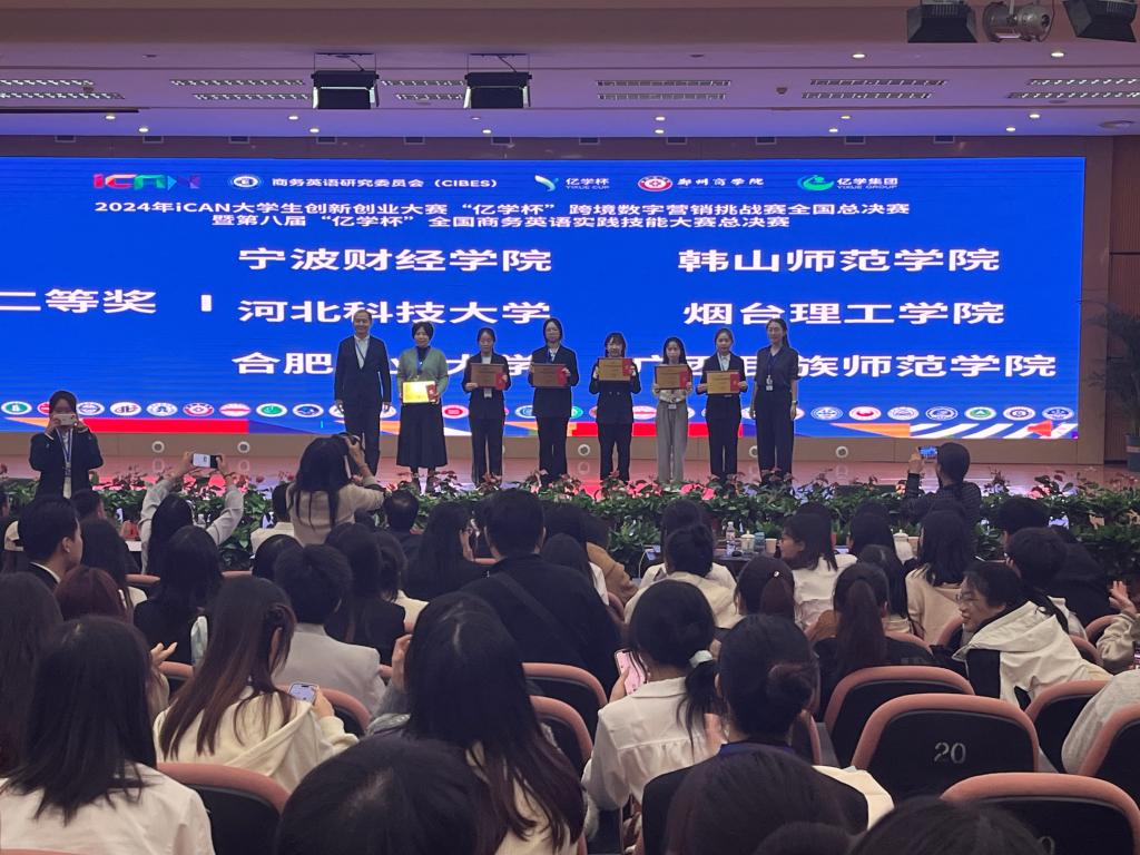 近日,烟台理工学院学子在第八届“亿学杯”全国商务英语实践技能大赛全国总决赛中再创佳绩。由外国语学院卢洁芳、李金红老师指导的外2204-1班代表队(苑欣茹、李明玉、张玉芊、张志恒、李明义)荣获本科组全国总决赛二等奖。由潘晓琳、张静老师指导的外2211-2班代表队(方子月、宋天娇、孙娜、韩宽心、于丹萍)荣获高职组全国总决赛二等奖。