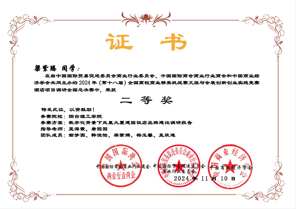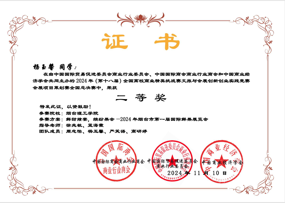 通过参与竞赛,学生们不仅提升了专业技能和综合素质,还增强了团队协作精神和创新意识。未来,我们将继续秉承“以赛促教,以赛促学”的理念,进一步加强创新创业教育,推动文旅与会展领域的产学研合作,培养更多具有创新精神和实践能力的高素质人才。