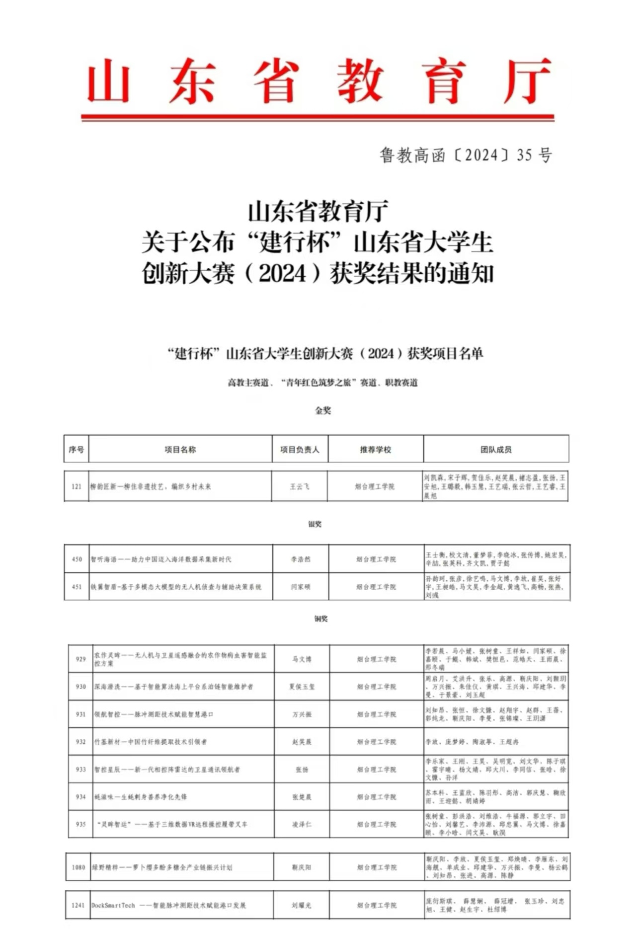 近日,山东省教育厅公布了“建行杯”山东省大学生创新大赛(2024)获奖名单,烟台理工学院获金奖1项,银奖2项,铜奖9项。其中,《柳韵匠新—柳住非遗技艺,编织乡村未来》项目获高教主赛道金奖,实现历史性突破。