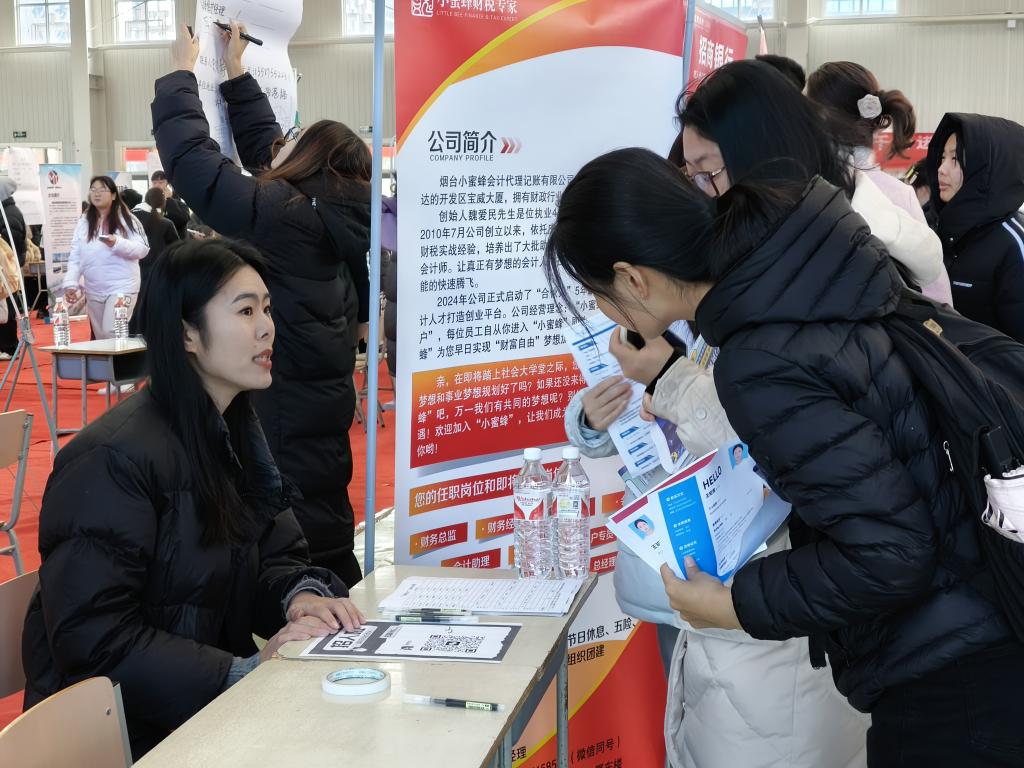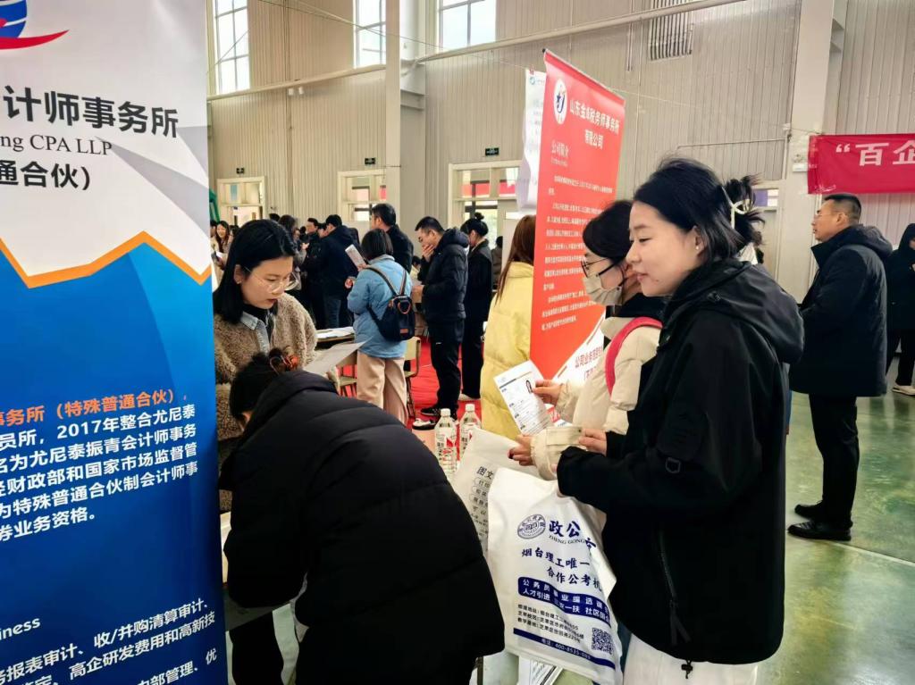 本次招聘会遴选了中金财富、尼泰振青会计师事务所(特殊普通合伙)烟台分所、山东金卓税务师事务所、国信证券、长江证券、招商银行等共43家知名企业,为毕业生精准提供涵盖了财务管理、会计学、市场营销、证券等多个专业领域的408个就业岗位,岗位类型紧扣财会经管专业特色,满足毕业生精准化的求职需求。招聘会吸引了千余人次毕业生参与,收集学生简历900余份。