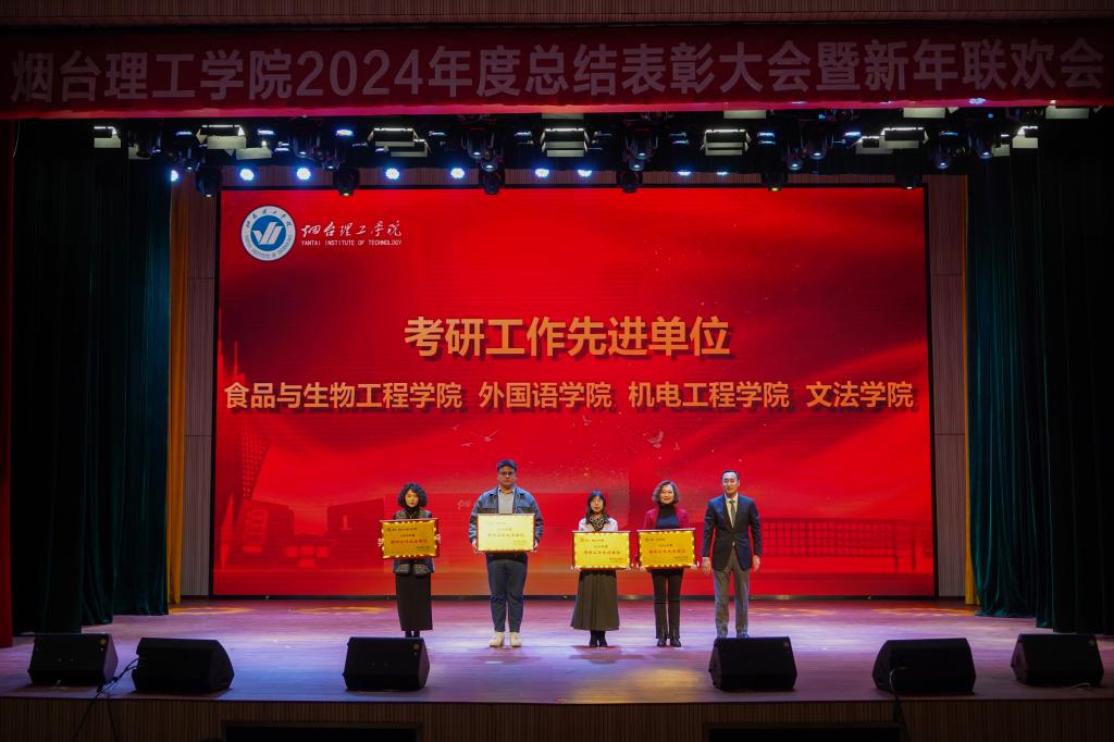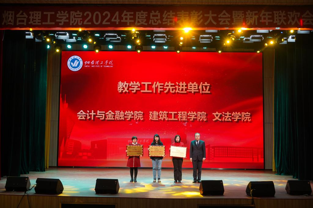 提质增效谱新篇,踔厉奋发永向前。1月14日下午,烟台理工学院2024年度总结表彰大会暨新年联欢会在综合楼一楼多功能厅举行。学校董事长辛军,校长于光辉、党委书记盛国军,董事会秘书长徐荣哲,副校长徐世艾、苏春景、张中华、夏毅,校长助理李洁、杜娟、徐雪峰出席大会,与全体教职员工欢聚一堂,共话喜悦收获,互道美好祝福。