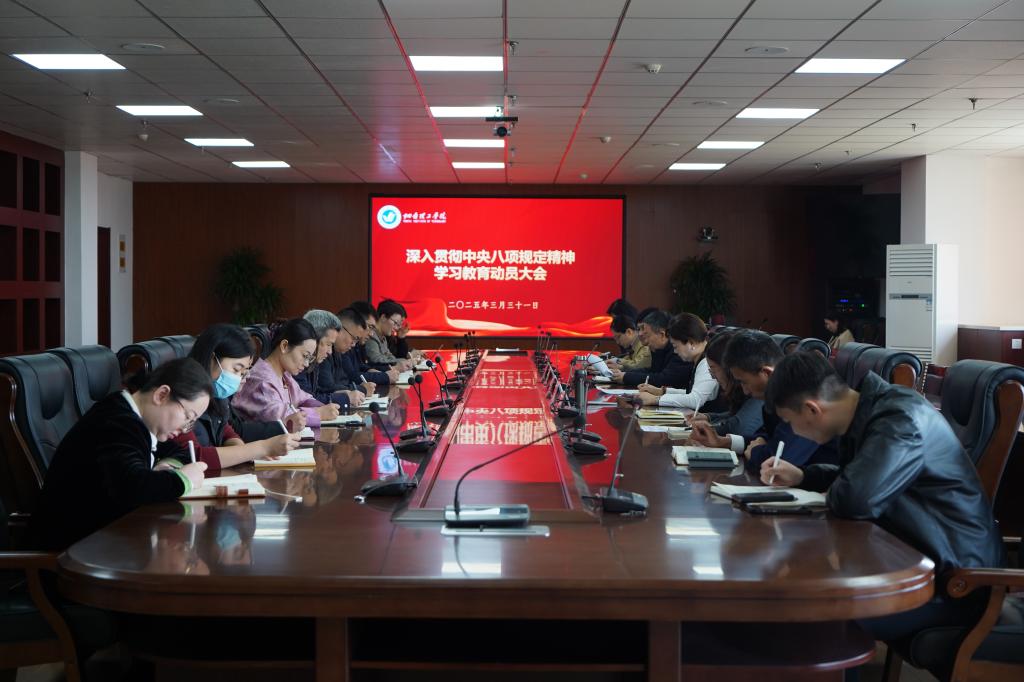 3月31日,学校在综合楼六楼视频会议室召开深入贯彻中央八项规定精神学习教育动员大会,深刻领会习近平总书记关于加强党的作风建设的重要论述和中央八项规定及其实施细则精神,对系统开展学习教育进行全面动员部署。校党委书记盛国军作动员讲话,省派党建联络员、全体党委领导班子、二级学院党总支书记(副书记)、直属党支部书记参加会议。党委委员、校长助理李洁主持会议。