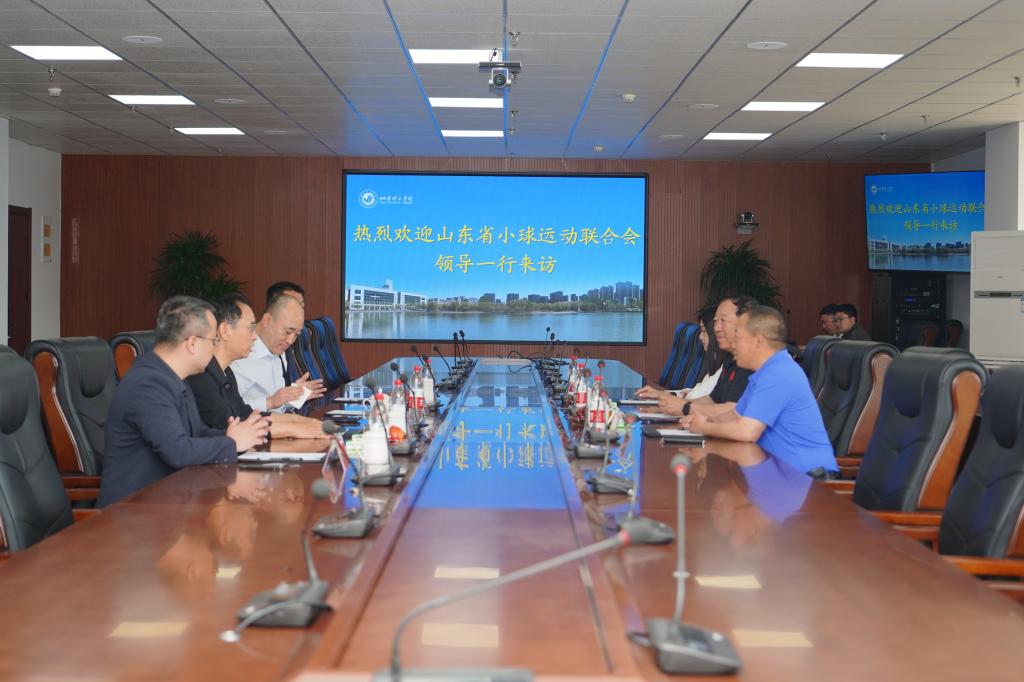 5月18日下午,山东省小球运动联合会名誉主席刘洪渭,山东省政协委员、山东省小球运动联合会党支部书记、主席修振涛一行来访我校参观交流,共同探索体育人才培养与合作新路径。董事长辛军,校长于光辉及相关职能部门负责人陪同参观校史馆并举行座谈会。