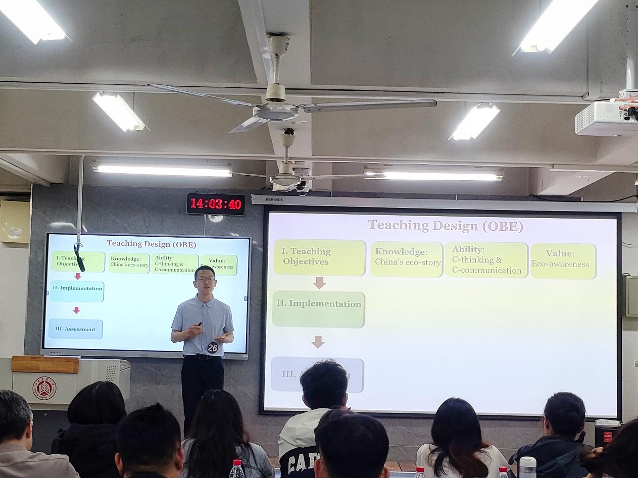 王宁的课程围绕“美丽中国”主题,依托多语种语料库综合平台,结合《传播中国大学英语进阶教程》,以匠心独运的教学设计,巧妙地将语言工具性与人文性融为一体;周均霞的教学设计中则通过精准把握国家健康体重管理年的思政元素,通过合理搭建学习支架、强化学用结合,助力学生多元发展。两位主讲教师凭借过硬的语言功底、沉稳大气的教态教风,赢得了现场评委和观赛教师的一致好评。