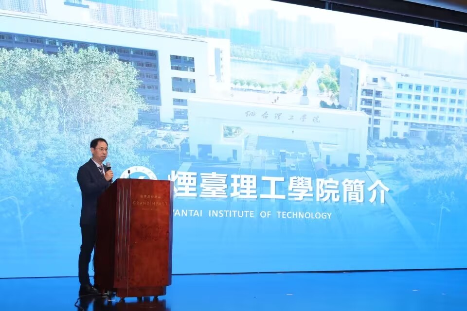 在鲁港教育文旅推介洽谈会上,于光辉校长作为高校代表推介宣传烟台理工学院办学理念和引才政策。