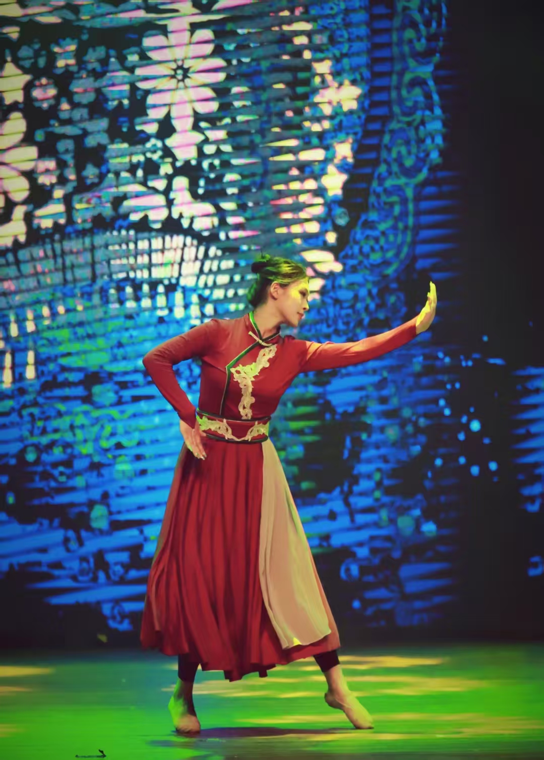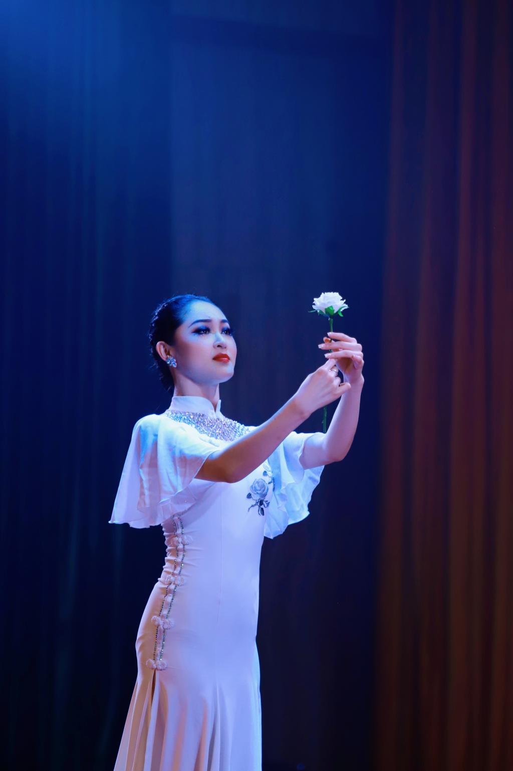 演出节目内容丰富多彩。开场前的高难度基本功展示,展现了演员们比肩专业的深厚功力。舞蹈《拉丁风暴》拉开序幕,热情的拉丁点燃舞台,嗨翻全场;古典舞《古典雅韵》与观众们共赴这场流动的丹青之约;公共艺术教育中心李姝慧老师表演的摩登舞《白玫瑰》,展现一朵倔强的花,在舞台上动人绽放。