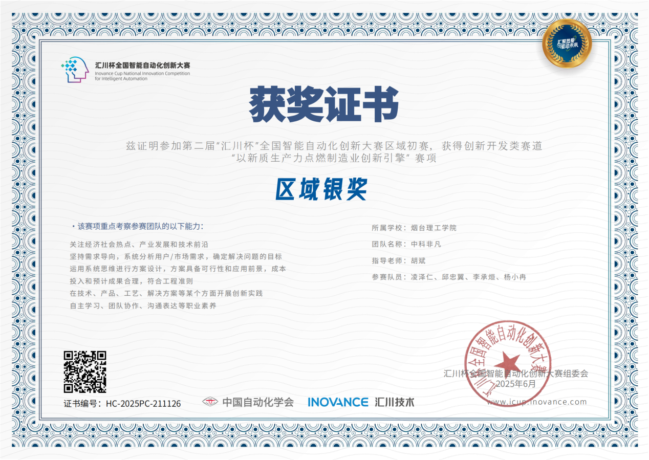 近日,在第二届“汇川杯”全国智能自动化创新大赛华北赛区的激烈角逐中,人工智能学院参赛团队以卓越表现脱颖而出,斩获区域赛银奖。
