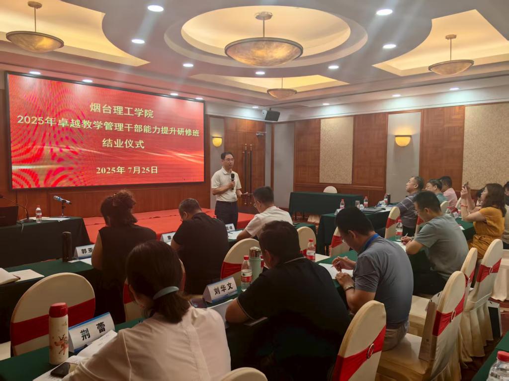 在7月25日的结业仪式上,8位教师代表立足不同视角,结合本次培训的收获与感悟进行总结发言。他们一致表示,此次研修内容丰富、实用性强,不仅拓宽了教育教学思路,更在理论与实践层面获得了显著提升,对今后教学管理工作具有深远的指导意义。于光辉在总结讲话中强调,每一位干部对学校发展要有坚定的信念和信心,勇于行动、敢于创新,成为院校研究和行动研究专家,携手共创烟理工的美好未来。