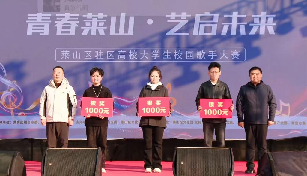 近日,由共青团莱山区委、莱山区文化和旅游局主办的2025莱山区“驻区高校大学生校园歌手大赛”圆满落下帷幕。我校公共艺术教育中心大学生艺术团的王安淇、邱伟健、朱晓滢同学,凭借扎实的唱功与独特的舞台表现力一路过关斩将,全程稳居前列,在50位参赛选手中脱颖而出,分别斩获银奖和铜奖。