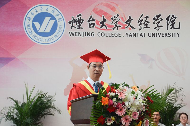 凤凰花开毕业季,骊歌声起话别离。6月19日,烟台大学文经学院2019届毕业生毕业典礼暨本科生学士学位授予仪式在大学生文体中心隆重举行。学院董事长辛军,执行董事曹世民,院领导于光辉、王来武、李荣梅、辛连军、尤敬法、莫红菊,各系及职能部门负责人出席典礼。党委书记唐家弘主持典礼。