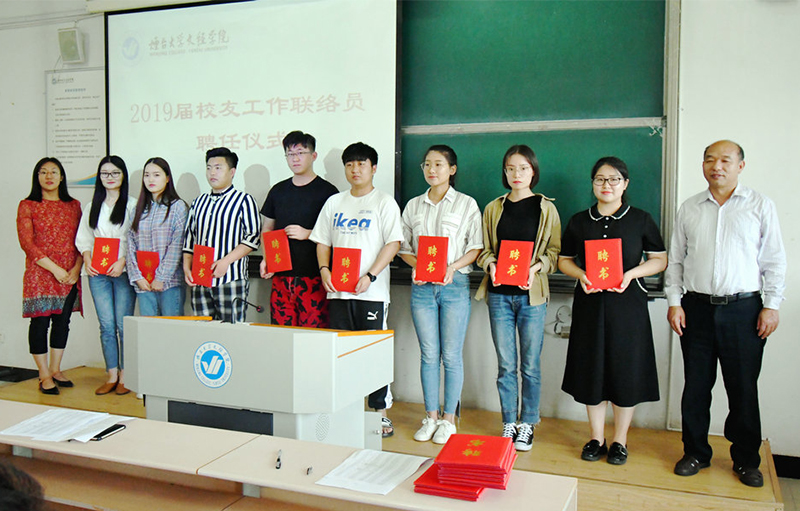 6月11日下午,2019届毕业生校友工作联络员会议在二教202教室举行。党委书记唐家弘、副书记李荣梅代表学院向90名校友工作联络员颁发聘书。学工部部长杜娟主持会议。
