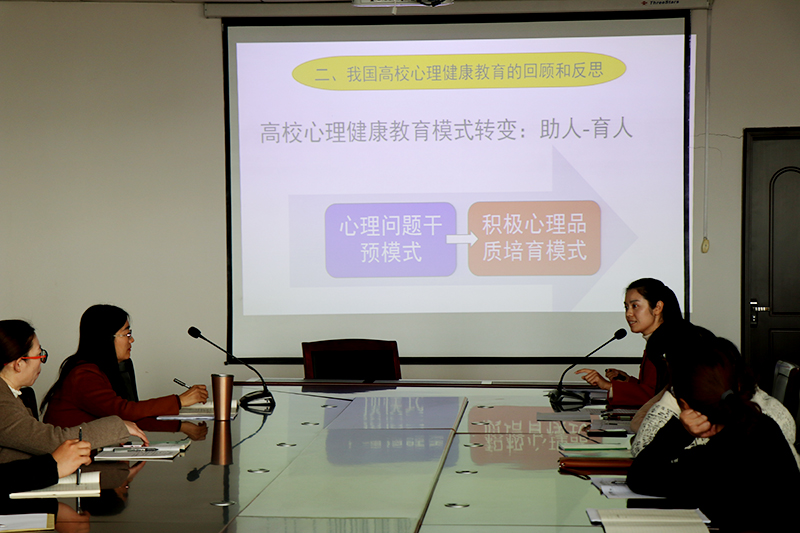 肖茹娟从“健康、心理健康及其意义”、“我国高校心理健康教育的回顾和反思”、“积极心理品质培育模式的理论依据”、“大学生积极心理品质培育的途径和方法”四个方面分享了对培养大学生积极心理品质的见解,她结合现实真实案例,让大家对如何培养大学生心理健康品质有了更深入的了解。张晓云结合自身经验,围绕“积极心态”、“健康生活”展开讲解,她指出辅导员应该加强生活中的危机感,做到细心谨慎。韩聪聪提出辅导员应该积极探索新时代大学生发展规律,转变学生思想教育理念和方法,关注学生内在世界的感受,注重提高学生的心理素质。辛汉玲具体讲解了咨询记录书写的相关问题,她认为咨询记录要书写规范,辅导员要认真负责,客观行事。