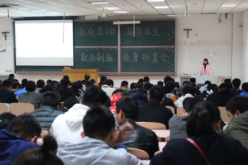 11月2日,机电工程系于二教115举办2018届毕业生就业创业教育动员会,特邀烟台未来自动装备有限公司钟梅主任担任主讲嘉宾。机电工程系主任刘加光、党支部书记刘福建、副主任刘安琴参加会议。团总支书记刘春强主持会议。