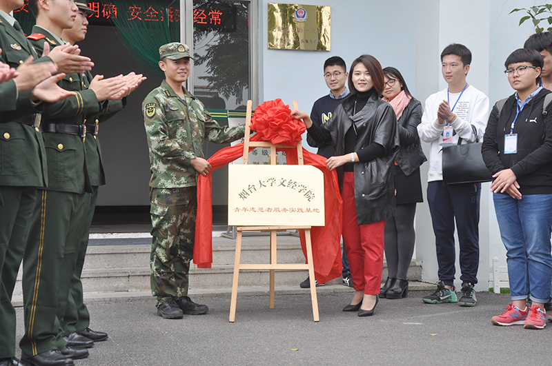 10月21日上午,管理系“暖阳暖心”志愿服务队在烟台市芝罘区武警中队举行青年志愿者服务实践基地挂牌仪式。团总支副书记王晶,辅导员柳嘉靖、裴鹤参加仪式。