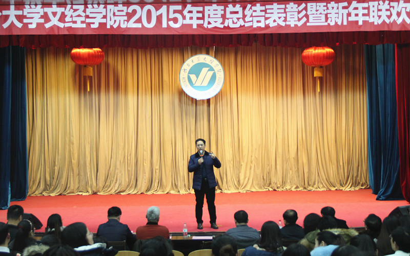 年终岁尾,春节将至。为总结、表彰一年来学院在各项工作中取得的喜人成绩,营造健康和谐的节日氛围,1月15日晚,烟台大学文经学院2015年度总结表彰大会暨新年联欢会在一教多功能厅隆重举行。院长于光辉,党委书记、副院长李相然,副院长王来武、刘孔庆,党委副书记李荣梅,副院长辛连军,院长助理尤敬法,与全院教职工欢聚一堂,共享喜悦。