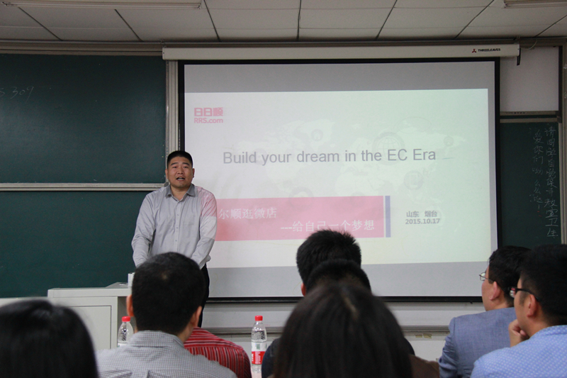 第一讲由海尔产品经理王成志总监主讲。他以“加入海尔微店,给自己一个梦想”为主题,结合多年工作经验,阐述了电商发展趋势和家电业最新动态以及电商在宏观下的微观经济体中如何应对的措施;通过分析电商对个人、制造企业、渠道的影响和制造企业转型的成功案例,强调造势以及创造第二品牌的重要性;提倡大学生应准备好拥抱互联网时代,鼓励同学们加入“顺逛”微店,在微店实践中实现自己的“创客”梦想。互动环节中,同学们踊跃提问,王总监一一解答,现场气氛热烈。