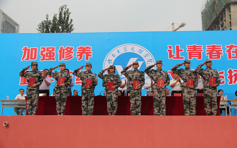 李相然书记在总结中,对为我院军训工作付出辛勤劳动的部队官兵表示衷心的感谢,向参加军训的同学们和军训团全体成员表示亲切地慰问,向在军训期间取得优异成绩的单位和个人表示祝贺。希望新生们在今后的工作和学习中,弘扬军训中形成的纪律严明、吃苦耐劳、团结互助的精神,发扬解放军同志的光荣传统和优良作风,努力学习科学文化知识,不断提高自身的素质和修养,努力使自己成长为社会主义事业的合格建设者和可靠接班人。吴伟上尉在讲话中表示,在短短的八天内,能感受到同学们昂扬的斗志、坚毅的精神,能感受到学院领导、老师认真负责的态度,通过军训,同学们学会了不怕吃苦、不畏困难、勇于挑战的精神,希望在今后的生活中,同学们能够将这种精神发扬下去。