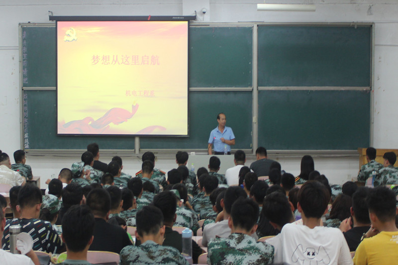 大会伊始,刘加光老师向同学们介绍了学院和机电系的基本情况,刘老师结合当代大学生所面临的社会环境,进一步阐述了树立远大理想的重要性,鼓励同学们扎实掌握专业知识,打好专业基础,通过锻炼和不断学习来提高自己,为走入社会打下基础。接着,刘福建老师以“梦想从这里启航”为主题,通过PPT展示历年来机电系取得的成绩,以及青年志愿服务、学风建设、升学就业等情况,同时要求新生们要养成良好的习惯,培养自信乐观,勇于克服困难的优秀品质。