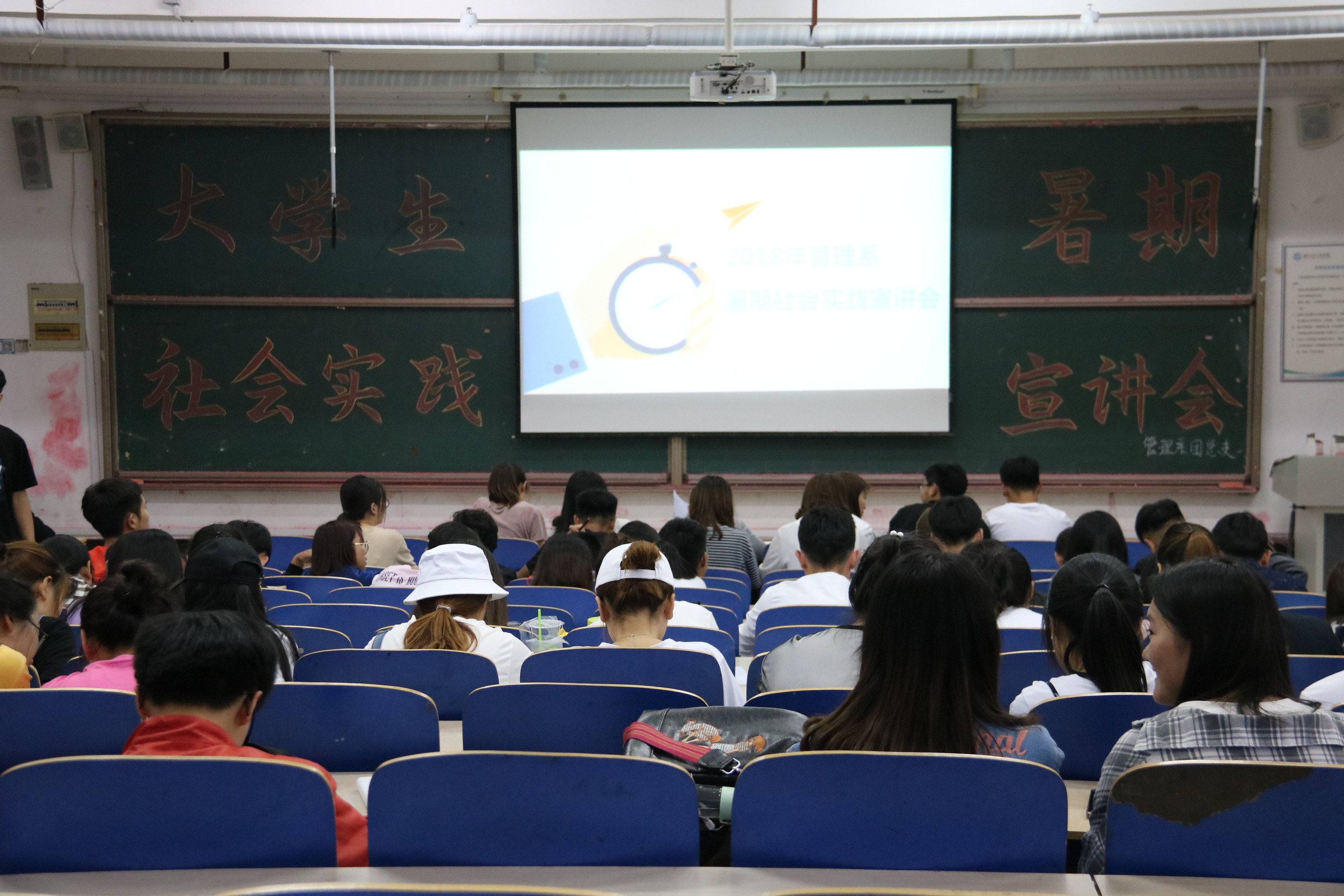 为加深管理学子对社会实践的认识与理解,6月8日下午,管理系于一教101举办了2018年暑期社会实践宣讲会,管理系团总支指导老师姜静出席会议并给予指导,各班级代表到场参加。