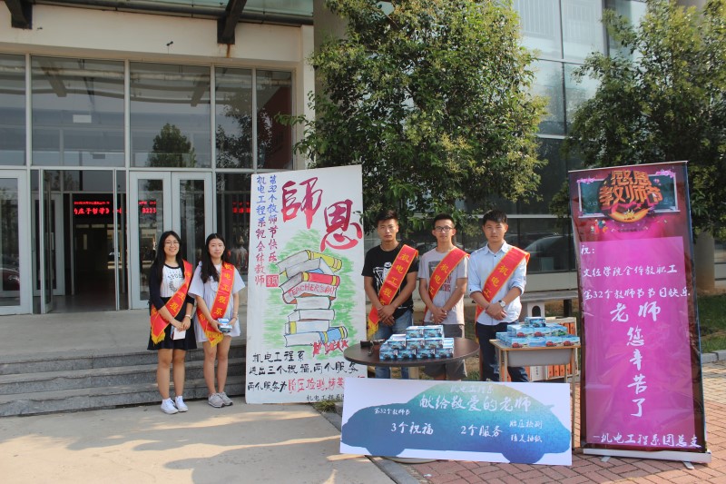 为庆祝全体教师第32个教师节,感恩教师淳淳教导9月9日机电系学生开展“三个祝福,两个服务”教师节答谢师恩活动。