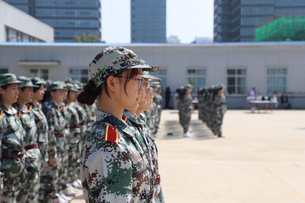 在训练场上,面对领导和老师们的检阅,同学们表现的更为努力,“一!二!三!四!”口号的回声此起彼伏,是晴日骄阳下力量与意志的交响乐。同学们无惧烈阳,迈着铿锵有力的步子,一遍又一遍的动作矫正,数不清的摆臂练习,汗水流过脸庞浸透眼底,但同学们依旧热情饱满,只为了能够展现最好的训练成果,展示军人般的坚毅。