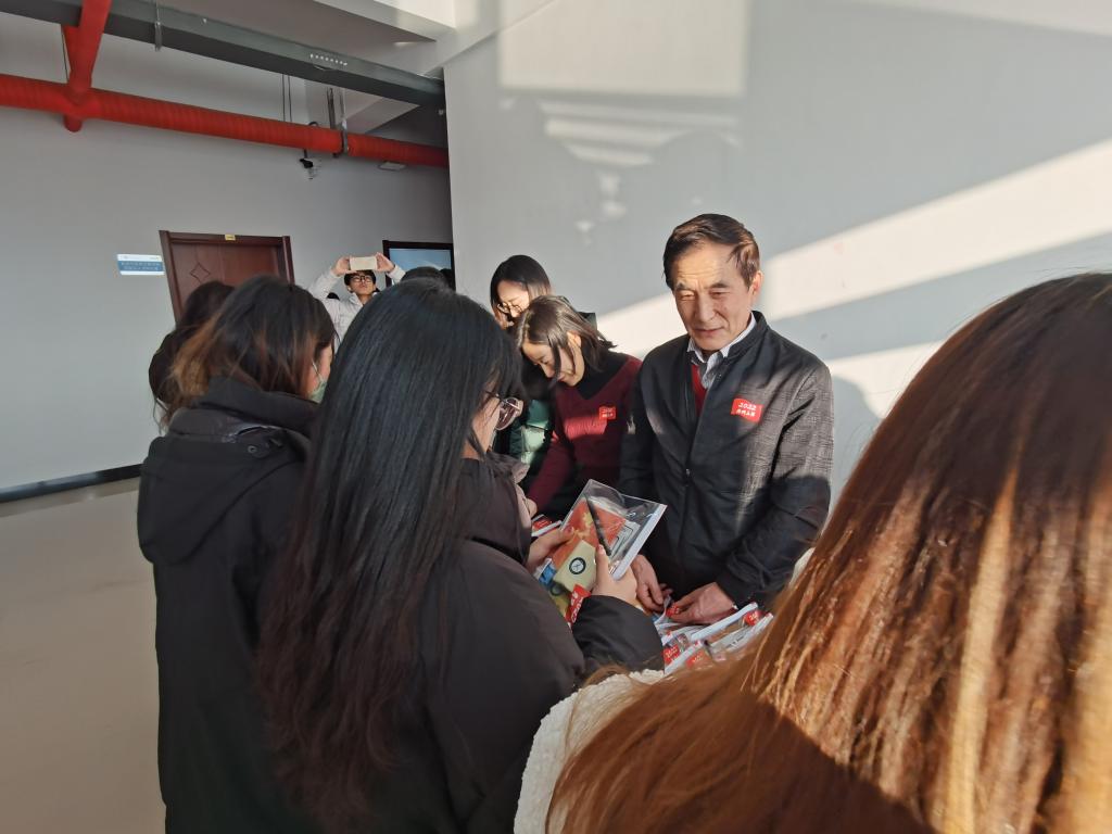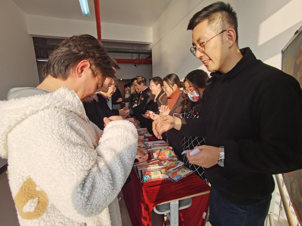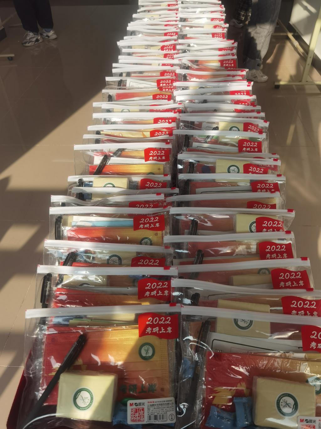 活动开始,各位领导、老师热情地为考研学子贴上带有“2022考研上岸”logo的标志,并亲手送上“考研暖心礼包”。院长、党总支书记金海珠对同学们积极备考、勤奋学习的状态给予肯定和表扬,鼓励同学们劳逸结合,沉着冷静应对考试,希望同学们在最后关头要顶得住压力、耐得住寂寞,放平心态,为自己的梦想坚持不懈,取得优异成绩!同学们纷纷表示备受鼓舞与感动,这份“考研暖心礼包”承载着学院师生对考研学子的关爱与祝福,定会化为前进的动力。