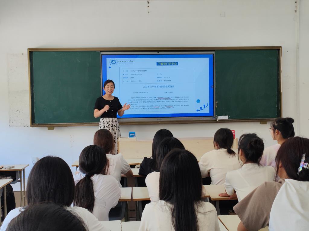 为帮助新生更好地适应大学生活,了解自己的专业设置及未来发展方向,9月3日,经济管理学院分别安排王崇红、孙经纬、刘娜娜、胡翠霞、王媛、张俊六位系部主讲老师,在各个专业教室为2023级新生详细介绍了市场营销、工商管理、跨境电子商务、酒店管理、国际经济与贸易、人力资源管理六大系部各个专业内容,全体2023级新生参加此次讲座。