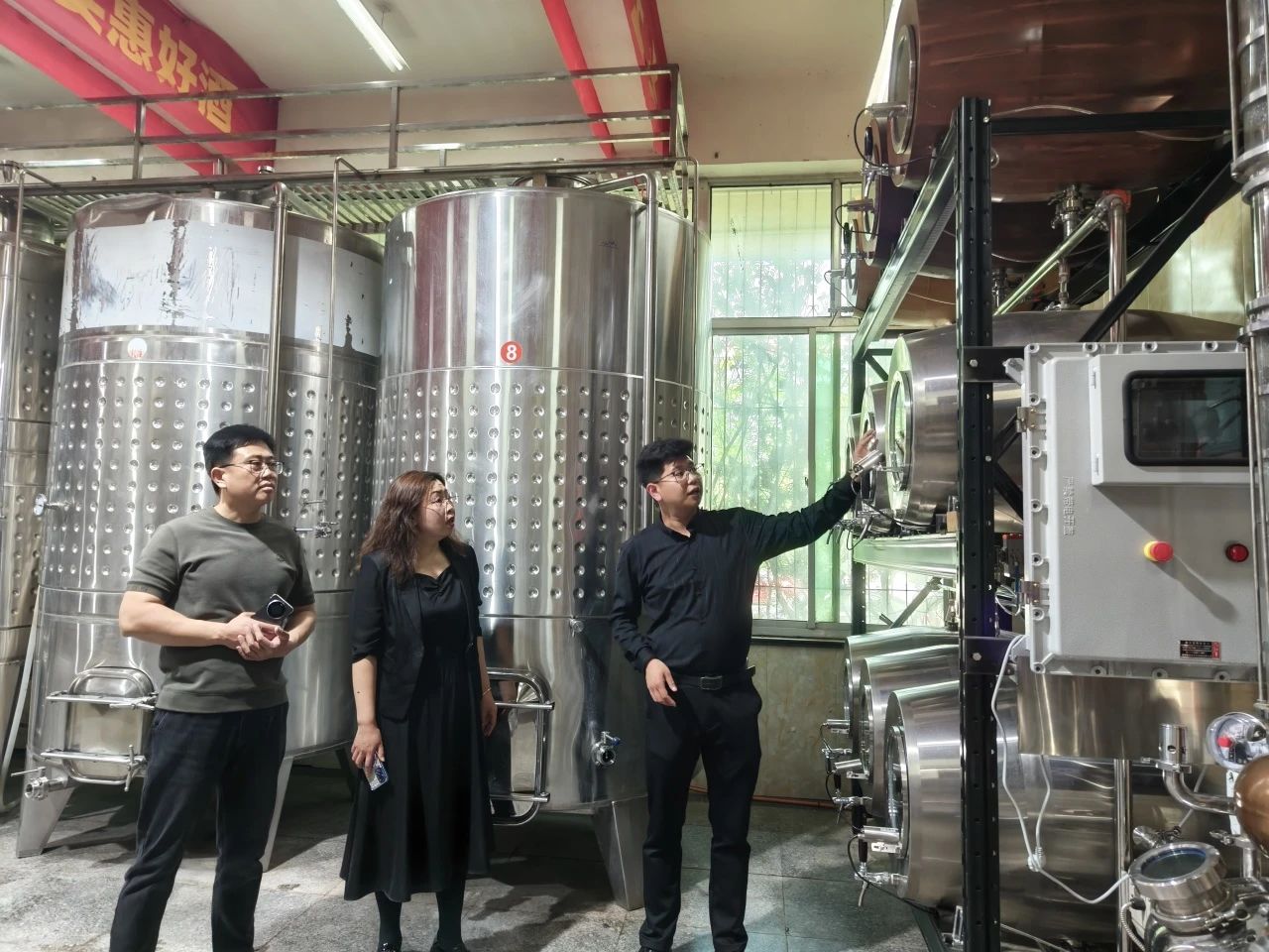 烟台大秦酿酒设备有限公司负责人对学院一行的到来表示热烈欢迎。王晶介绍了学院的学科专业设置、人才培养模式以及毕业生就业情况等,高娜表示希望通过此次访企活动,进一步加强校企合作,在人才培养、实习就业、产学研合作等方面开展深度交流与合作,为毕业生拓宽就业渠道,为企业输送更多优秀人才。公司负责人全方位介绍了大秦酿酒设备有限公司产业体系、核心优势,详述岗位薪资福利与岗位能力要求,并对学院的人才培养质量给予了高度评价并达成了初步合作意向。