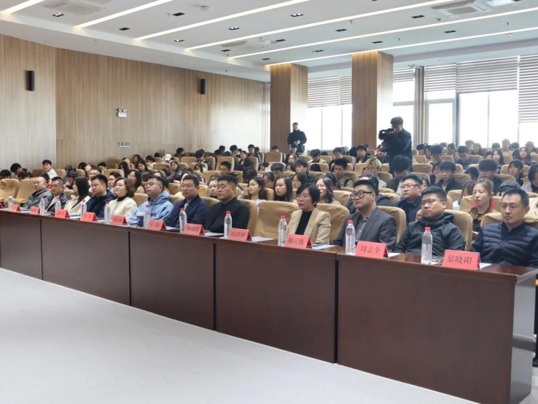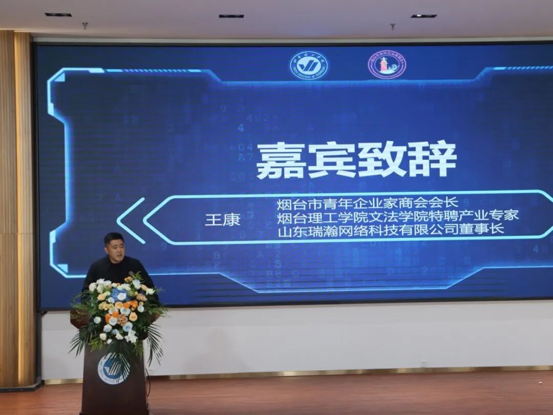 为了推动校企合作,引导健康网络行为,丰富校园文化生活,提升学生数字素养,由烟台理工学院、烟台市青年企业家商会联合主办,文法学院承办的烟台理工学院第三届大学生网络文化节闭幕式于11月1日在烟台理工学院综合楼六楼学术报告厅举行,团总支副书记纪俞舟主持。