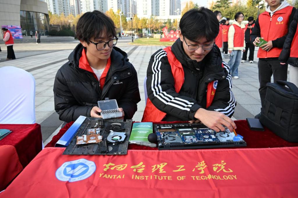 为推动校地资源联动赋能社区服务,11月29日,由烟台市莱山区委组织部、莱山区社会工作部、莱山区民政局主办的“链接幸福・赋能社区”莱山区社区项目资源对接会在五彩广场举行。信息工程学院党总支副书记王明印、团总支书记祝箐带领志愿者走进活动现场,开展“E 码当先・电脑义诊”志愿服务活动。以“技术服务 + 宣传科普”双轨模式,为社区居民送上精准便民服务。